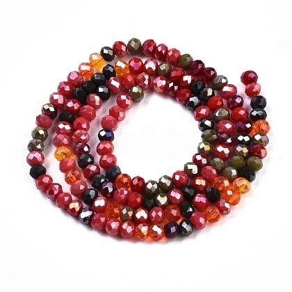 Artikelnummer: M-12 bak 8-40 OverzichtStreng Glaskralen Facet Rondelle Briolette 3,5x3 mm – FireBrick AB Plated – ca. 132-140 stuks – Gat 0,8 mm