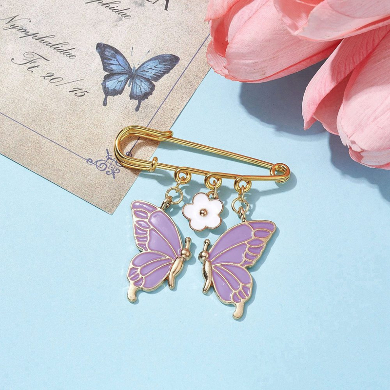 Deze elegante kiltspeld broche met vlinder- en bloemmotief is een prachtige accessoire om uw outfit een stijlvol accent te geven. De emaille afwerking in de kleur medium orchid zorgt voor een verfijnde uitstraling, terwijl de goudkleurige basis het ontwerp een warme glans geeft. Perfect om te dragen aan een jas, sjaal, vest of tas, of om te verwerken in een persoonlijk herinneringssieraad of een liefdevol handgemaakt cadeau.