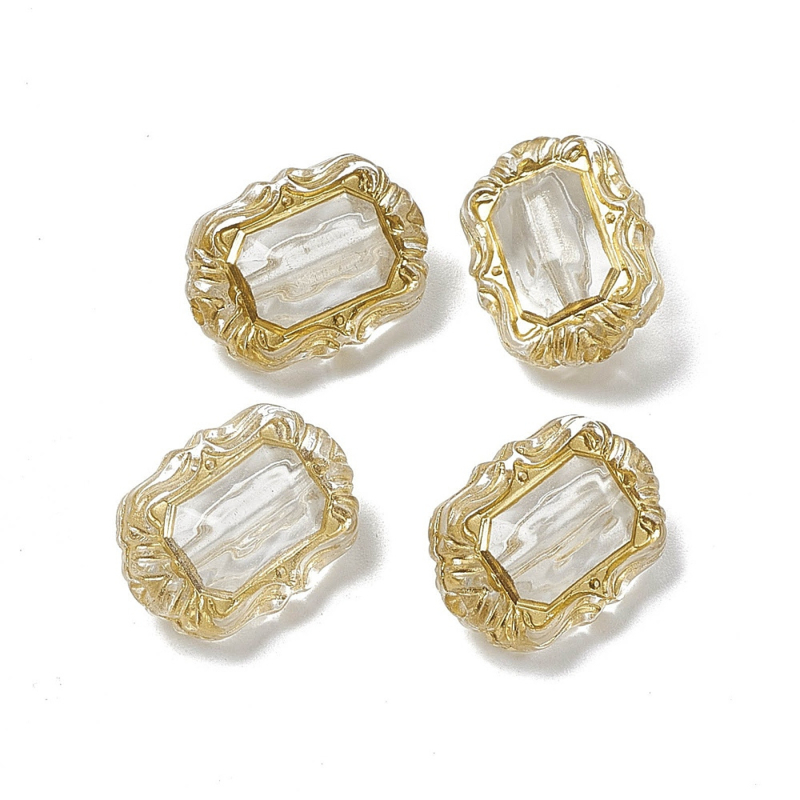 Deze ornament acryl kralen in rechthoekige vorm zijn mooi te gebruiken bij het maken van armbandjes, kettingen en andere sieraden met een rustig maar decoratief accent. De combinatie van transparant acryl met een goudkleurige metalen omlijsting geeft deze kralen een nette en verzorgde uitstraling. Door de heldere kleur zijn ze eenvoudig te combineren met allerlei kralen en kraaltjes, waardoor ze geschikt zijn voor zowel subtiele als meer uitgesproken ontwerpen.