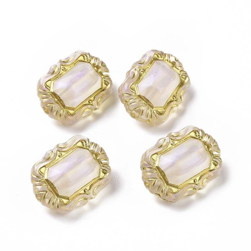 Deze ornament acryl kralen in ovale vorm zijn mooi te gebruiken bij het maken van armbandjes, kettingen en andere sieraden met een licht en decoratief accent. De combinatie van transparant acryl met een goudkleurige metalen omlijsting zorgt voor een verzorgd en opvallend detail in uw ontwerp. De clear AB afwerking geeft een subtiel kleurenspel in het licht, waardoor deze kralen net wat extra uitstraling krijgen tussen andere kralen en kraaltjes. Ze zijn zeer geschikt als tussenstuk of als blikvanger in sieraden maken met kralen.