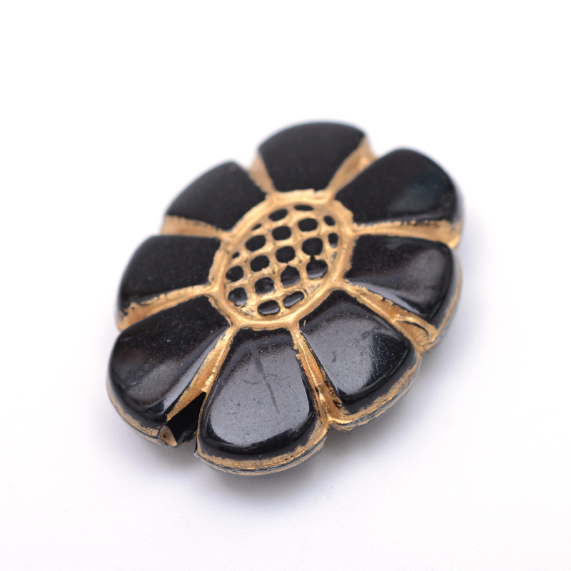 10 x Acryl kralen bloem 24,5 x 19 mm – gat 2 mm – zwart/goudkleur