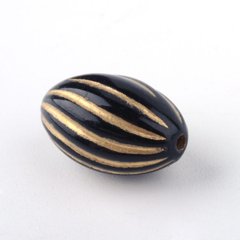 10 x Acryl kralen ovaal 14,5 x 9 mm – gat 1,5 mm – zwart/goudkleur