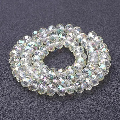 Deze streng bevat ca. 72 facetgeslepen glaskralen in rondelle briolette vorm. De kralen hebben een afmeting van 8 x 5 mm en een rijggat van ca. 1 mm. De lichtgele AB-afwerking geeft de kralen een zachte glans met een subtiele regenboogreflectie. Ze zijn uitstekend geschikt voor verfijnde ontwerpen bij het zelf sieraden maken.