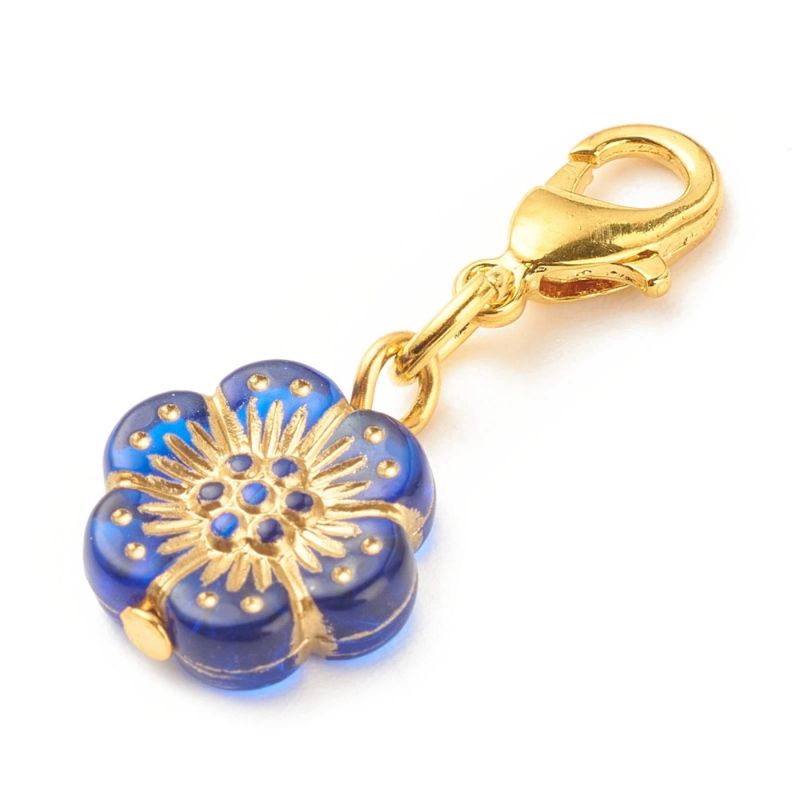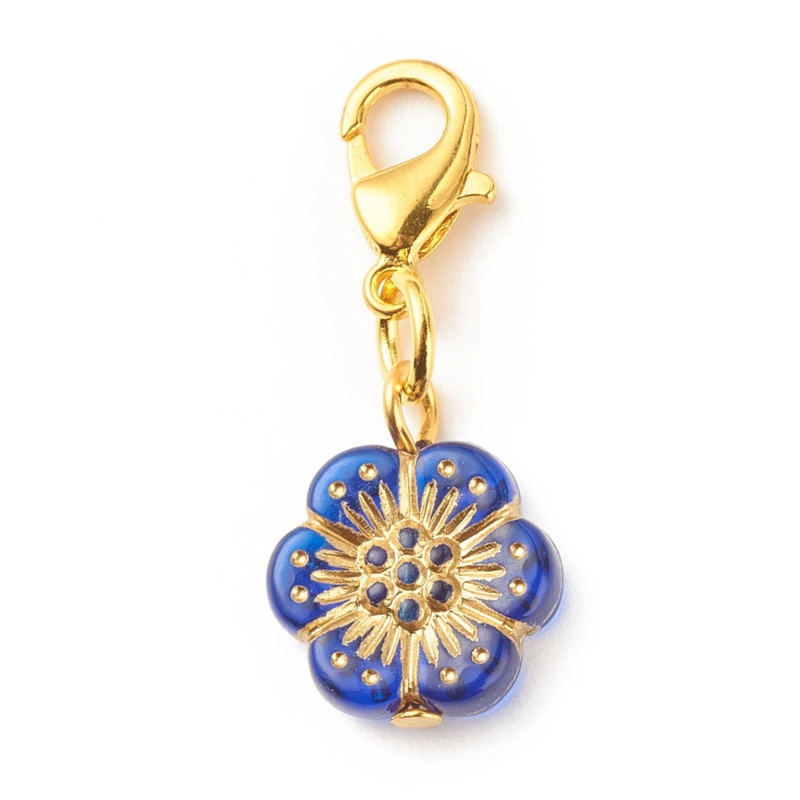 Overzicht5 x Bloem bedeltjes aan karabijnsluiting 30 mm – goudkleur – mix kleuren