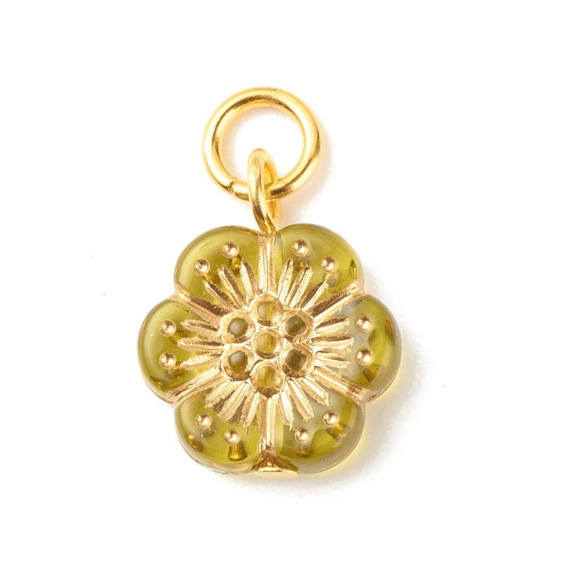 5 x Bloem bedeltjes aan buigring 16 x 13 x 4 mm – gat 4 mm – goudkleur – mix kleuren