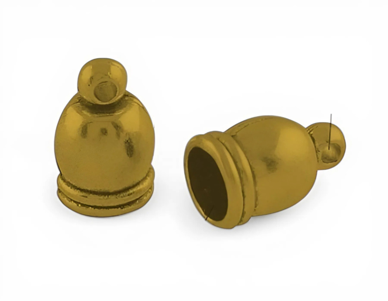 Artikelnummer: H-24 Bak Naampje Overzicht2 x Koordkapjes 12 x 7 x 7 mm – Ø 6 mm – oogje 1 mm – antiek goudkleur