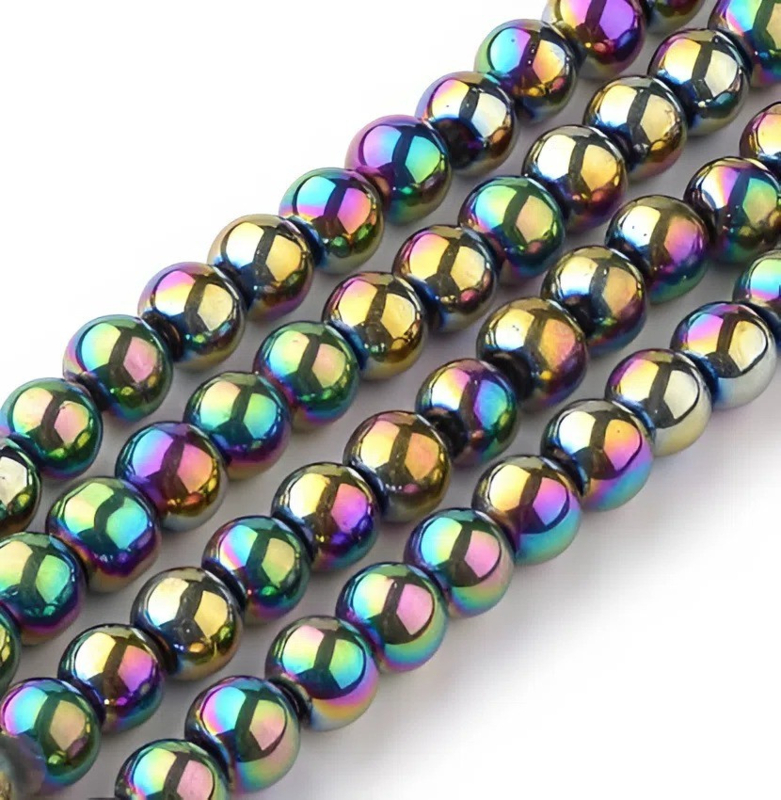 Artikelnummer: H-27 bak frosted rainbow lichtbruin AB Overzicht1 x Streng multi-color plated glaskralen 4 mm – gat 1 mm – ca. 70 stuks (± 27 cm)