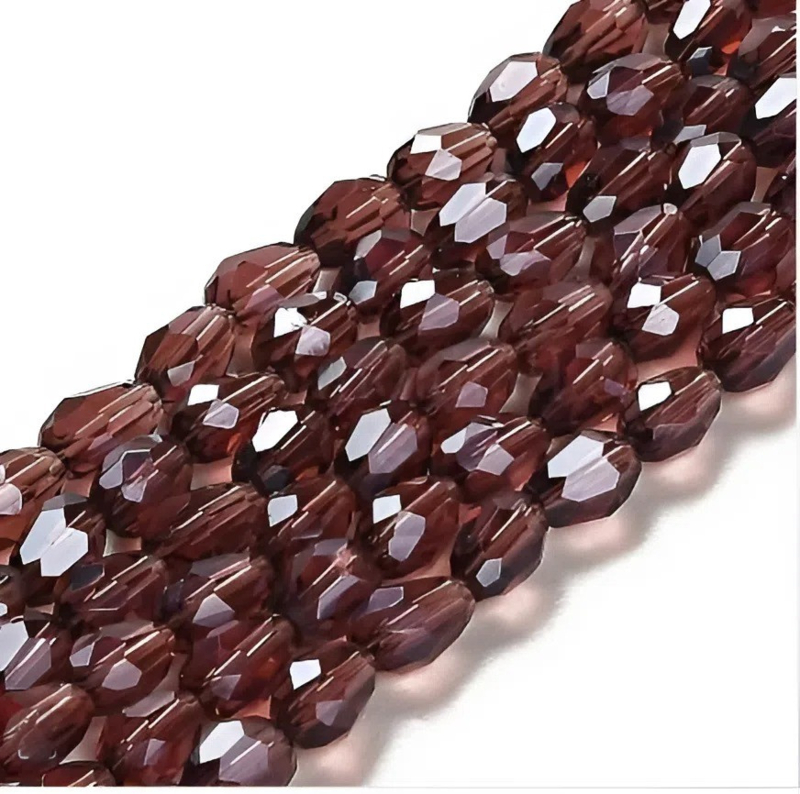 Deze streng met facet geslepen glaskralen in druppelvorm en een paarse kleur geeft uw sieraden een opvallend en speels detail. Door de facetgeslepen afwerking vangen deze kralen het licht op een mooie manier, waardoor ze extra tot hun recht komen in armbandjes, kettingen of oorbellen. De druppelvorm zorgt voor een sierlijk effect en maakt deze kraaltjes zeer geschikt voor het sieraden maken met kralen.