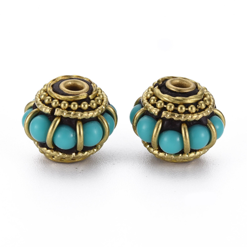 Artikelnummer: Mag stelling 1 Bak 117 OverzichtBohemian kraal / Kashmiri kraal 11 x 14 x 13 mm – Turquoise (Nikkelvrij)
