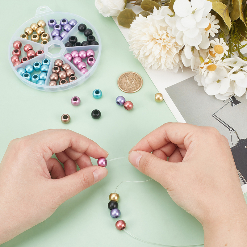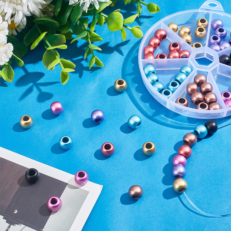 Dit doosje bevat een gevarieerde mix acryl kralen in rondelle vorm met een groot rijggat, waardoor ze prettig werken bij het zelf sieraden maken. Door het lichte gewicht zijn deze kralen comfortabel om te dragen en geschikt voor het maken van armbandjes, kettingen en accessoires met dikker rijgmateriaal. De verschillende kleuren maken het eenvoudig om speelse combinaties te maken of een persoonlijk tintje toe te voegen aan een handgemaakt sieraad.