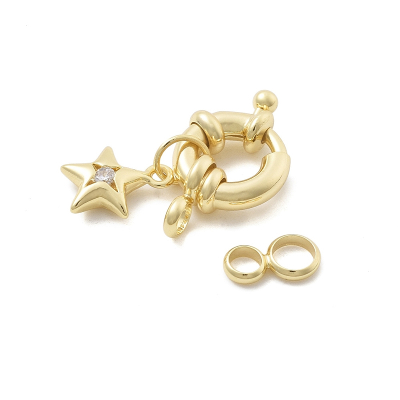 Artikelnummer: Onder C-06 / C Overzicht1 x Metalen boeisluiting veerslotje ster 23 mm – 18K goldplated (Nikkelvrij)