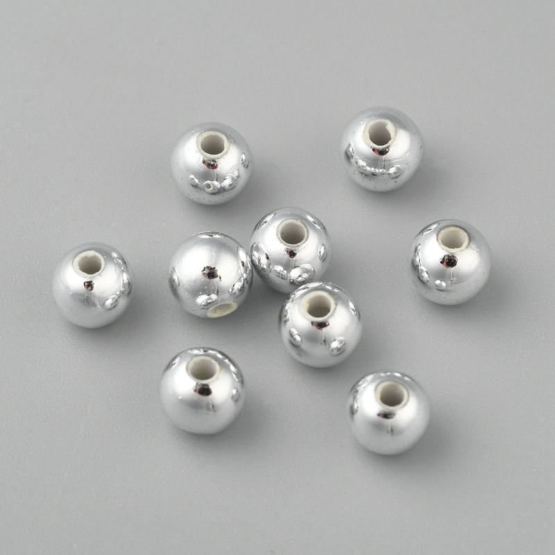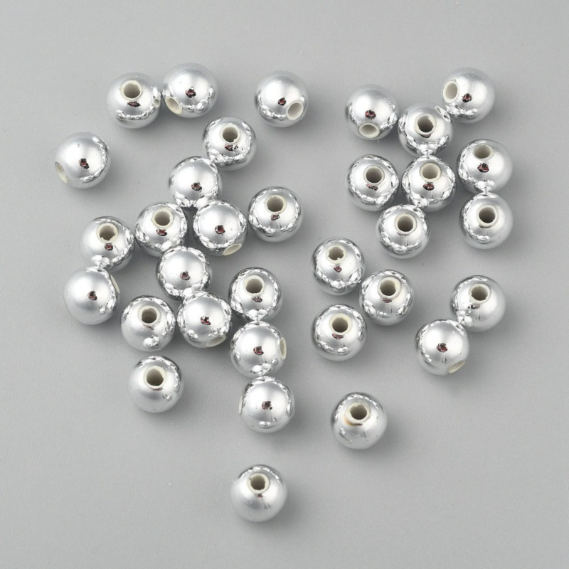 Artikelnummer: Onder C-06 / G Overzicht25 x Metaallook acryl kralen 6 mm – gat 1 mm – zilverkleur