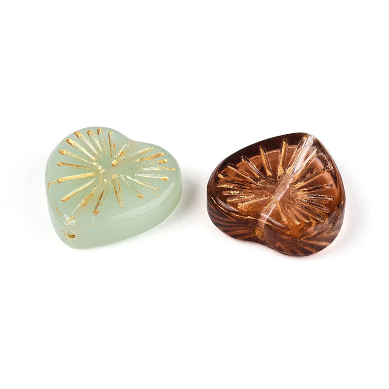 Deze glaskralen in hartvorm met goudkleurige metalen details geven uw sieraden een opvallende en speelse uitstraling. Door de transparante afwerking en de mix van kleuren ontstaat er een mooi effect in het licht. Ideaal voor het maken van unieke armbandjes, kettingen en oorbellen met een persoonlijk tintje. Deze kralen zijn perfect te combineren met andere kralen en sieraden onderdelen.