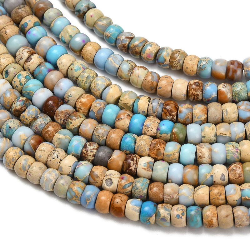 Artikelnummer: K-11 Hematiet Goud / K Overzicht10 x Edelsteen kralen Imperial Jaspis rondelle 4 x 2–3 mm – gat 1,2 mm – gemixte kleuren