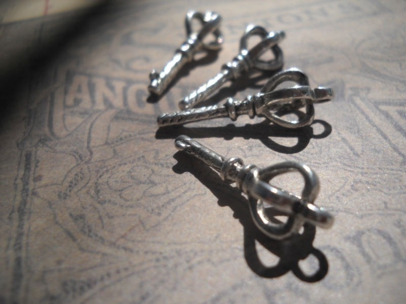 4 x Tibetaans zilveren sleutel 26 x9 x 2mm gat: 1,5mm