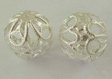 Artikelnummer: Stelling D-05 Bak April OverzichtRonde holle verzilverde metalen filigraan kraal 20 x 19mm gat 1,2mm