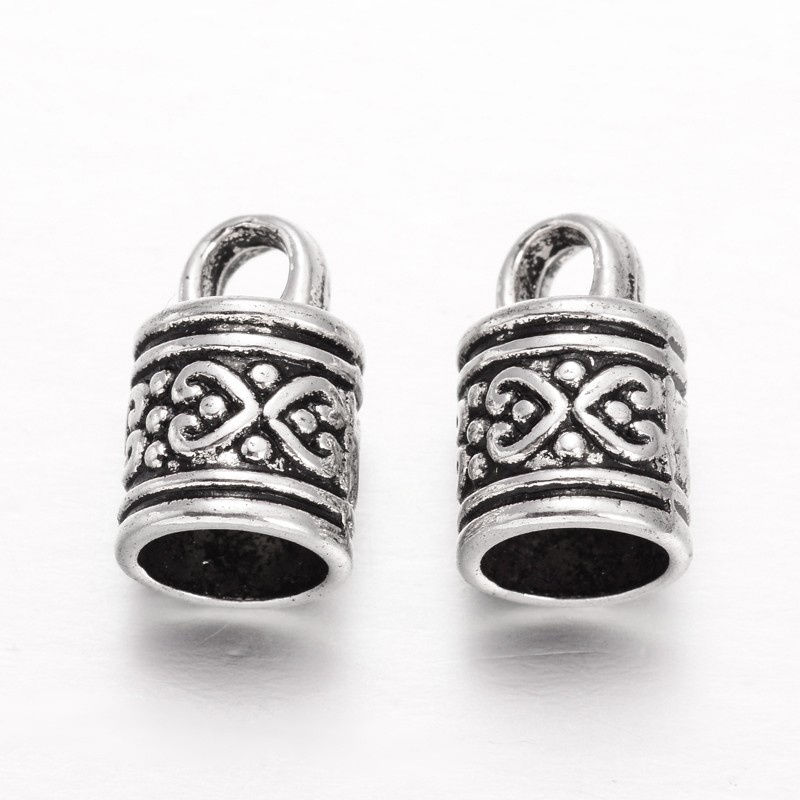 5 x Metalen koordkapjes, antiek zilverkleur, afm. 16 x 10mm oogje: 4 x 3 mm Ø 7,5mm