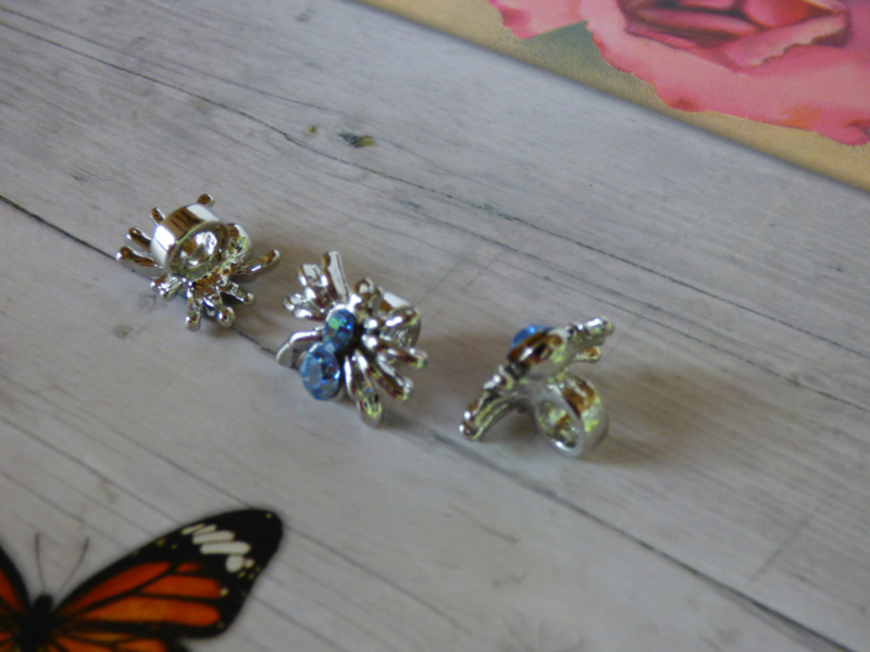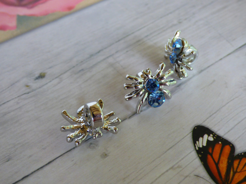Metalen European Jewelry kraal spin met strass ca. 12 x 18mm gat: 4.3mm