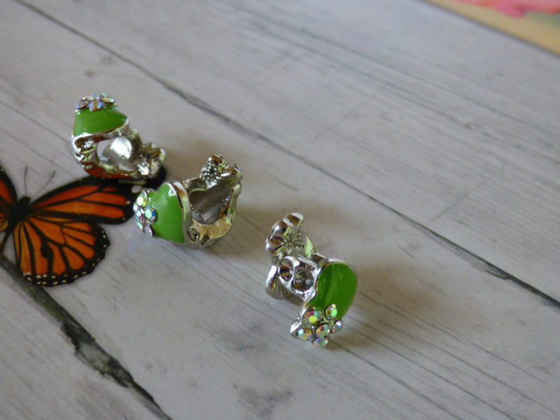 1 x Metalen European Jewelry kraal groen hart met strass ca. 10mm gat: 5mm