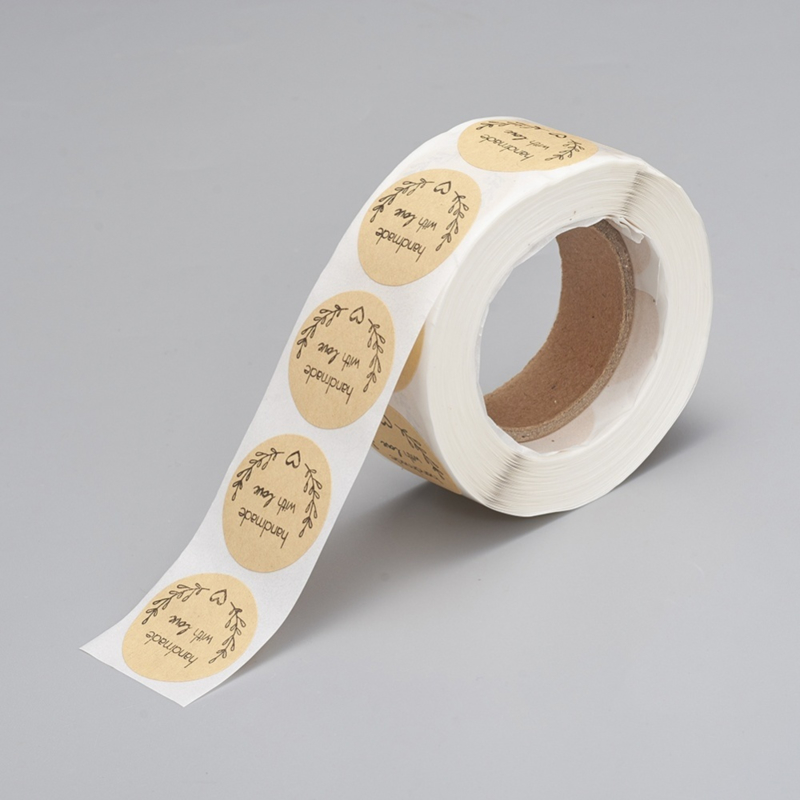 1 rol 500 stickers Wensetiket zegel rond 25mm Handmade with love
