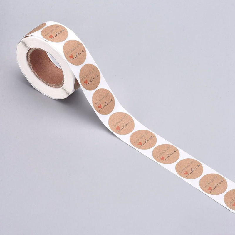 1 rol 500 stickers Wensetiket zegel rond 25mm Handmade with love