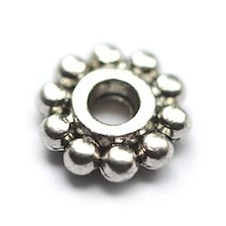 Artikelnummer: Stelling H-08 bak 2 Overzicht20 x Metalen spacer beads – 6,5 mm – antiek zilverkleur – gat ca. 2 mm (nikkelvrij)