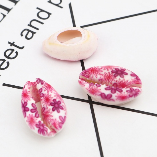 Artikelnummer: bak 9 /B0215152 OverzichtKauri schelp kralen met fuchsia bloemen 25 x 17mm-18mm x 14mm