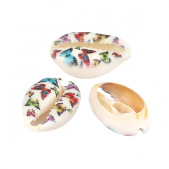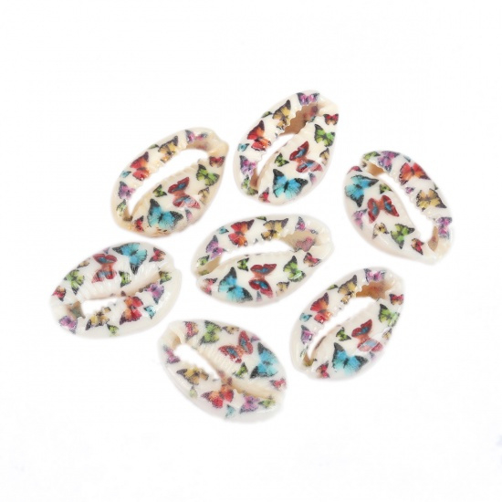 5 x handbeschilderde kauri kralen met vlinders 25 x 17mm-18mm x 14mm