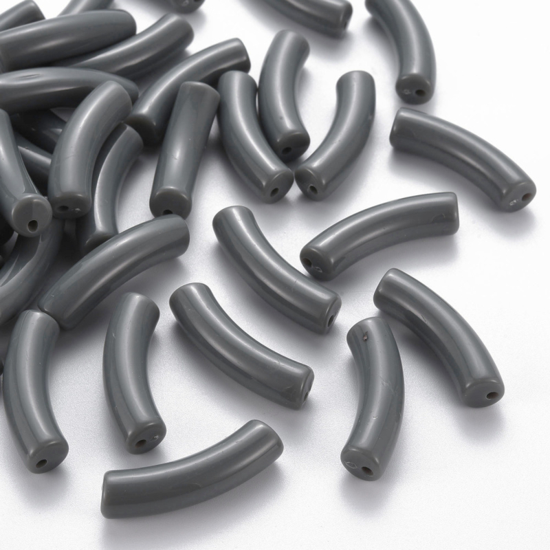 10 x Acryl kralen tube opaque Gray ca. 32x8mm (gat Ø1.8mm)