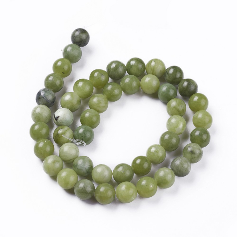 Deze ronde edelsteen kralen van Taiwan Jade in de kleur Olive Drab hebben een diepe groentint met een rustige en natuurlijke uitstraling. Met een diameter van 8 mm en een rijggat van ca. 1,5 mm zijn ze zeer geschikt voor het maken van een edelsteen armband maken, een stevige ketting of andere sieraden waarbij u graag werkt met iets dikker rijgmateriaal.