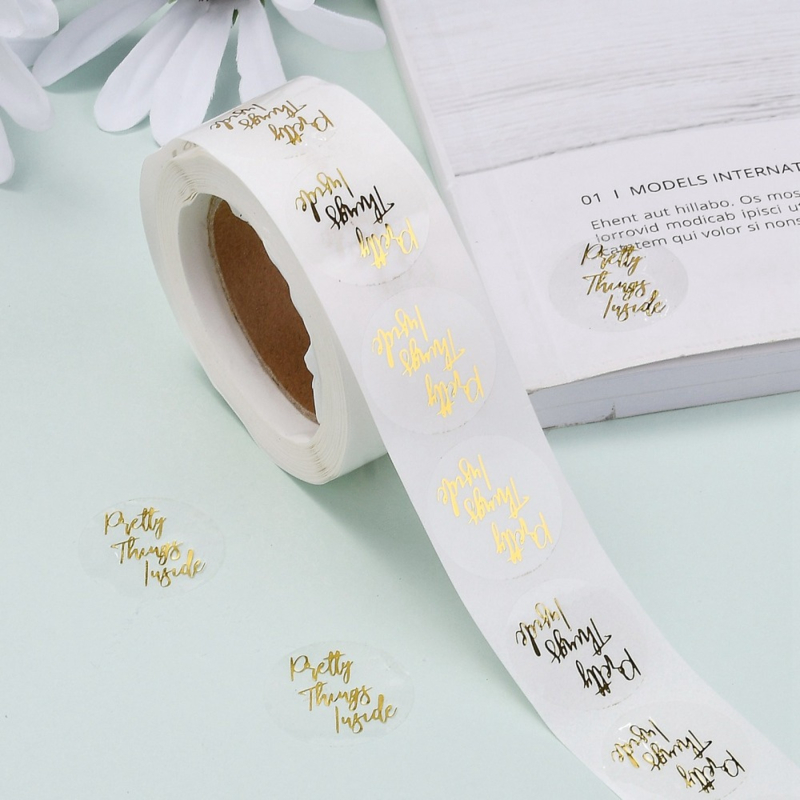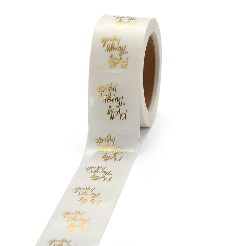 1 rol 500 stickers Wensetiket zegel rond 25mm Pretty Things Inside Wit goud