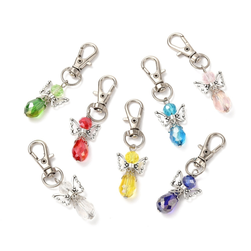 Artikelnummer: Onder Stelling C-24 Overzicht2 x Geluksengeltjes mixkleuren met haaksluiting 61 mm – oogje 1,5 mm – zilverkleur
