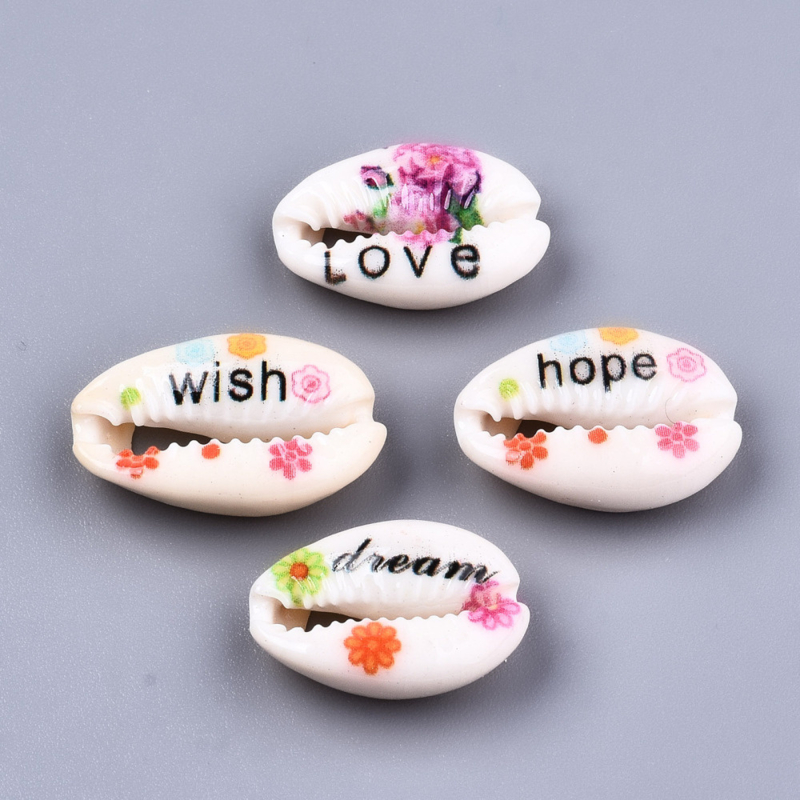 Artikelnummer: Onder B-36 Bak 6 OverzichtHandbeschilderde kauri kralen met woorden mix 18~22 x 13~14 x 6~8mm