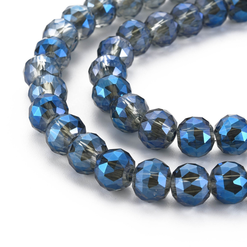 10 x top facet glaskraal electroplated 10 x 8,5mm gat: 2 mm Steel Blue