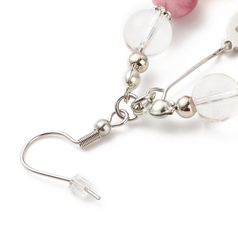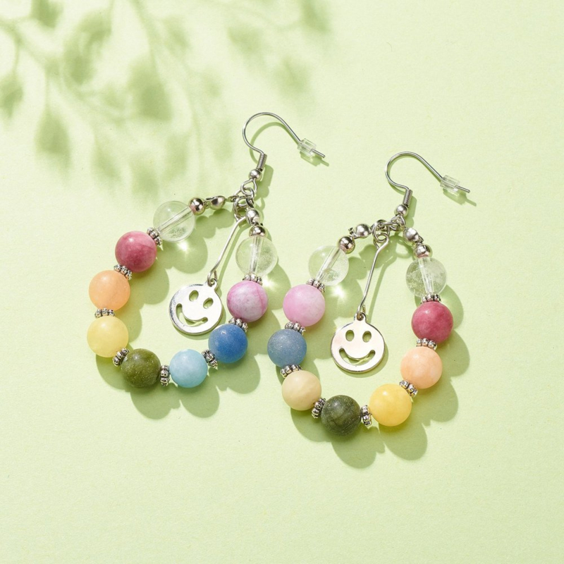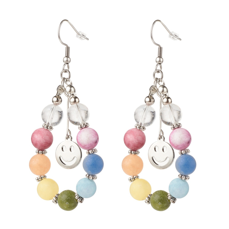 1 paar RVS oorbellen met gemixte edelsteen kralen met 201 RVS smiley's en 304 RVS haakjes en draad