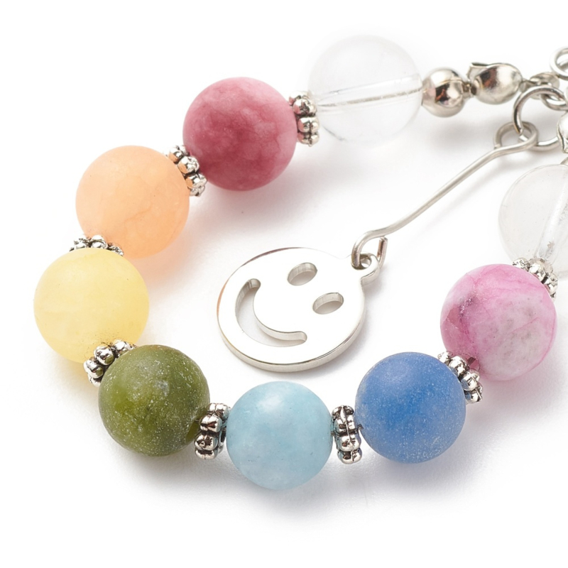 Artikelnummer: Magazijn stelling 2 Plank 13 Bak 1 OverzichtRVS oorbellen met gemixte edelsteen kralen met 201 RVS smiley's en 304 RVS haakjes en draad