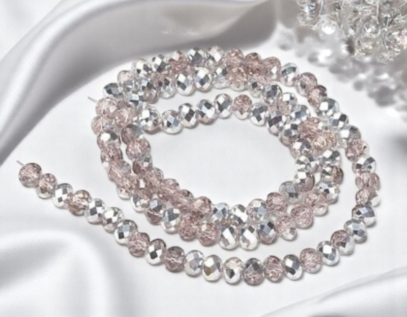 Streng met ca. 63–65 glaskralen facet rondelle briolette kristal – 8 x 6 mm – gat 1 mm – Pink AB Plated
