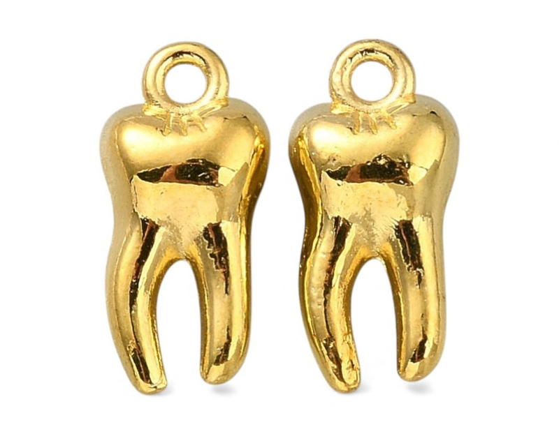 4 x bedeltjes tand/kies – 15,5 x 7,5 x 5 mm – oogje 1,6 mm – goudkleur4 x bedeltjes tand/kies – 15,5 x 7,5 x 5 mm – oogje 1,6 mm – goudkleurDeze set van 4 goudkleurige tand/kies bedeltjes is een leuke en opvallende toevoeging aan uw sieraden. Met een afmeting van 15,5 x 7,5 x 5 mm en een oogje…