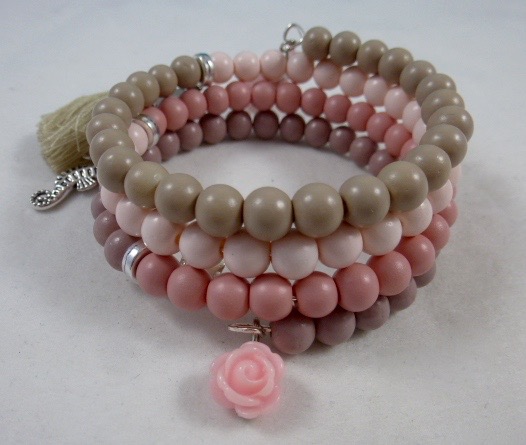 Een armbandje dat heel mooi te combineren is met taupe, beige, ecru, roze, wit... maar gebruik je fantasie en draag het ook bij donkerrood, donkerblauw, etc.