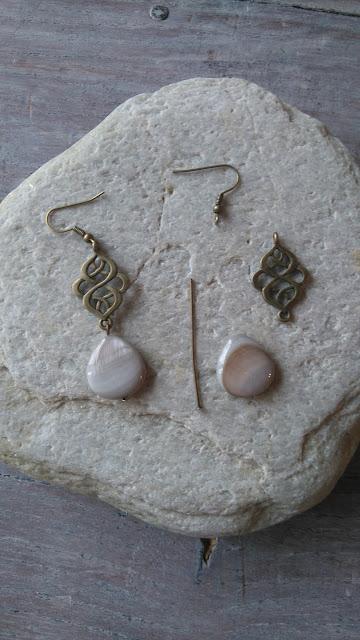- Rijg de schelp op een nietstift. Bevestig dit aan het bronzen tussenstuk. Maak hier nog een haakje aan en klaar zijn de oorbellen.