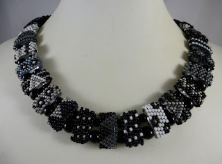 Nog enkele voorbeelden. Je kunt de ketting van vrijwel alleen maar kralen maken, maar ook van ca. 9 en verder afwerken zoals de bovenste.