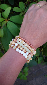 Hoe zomers is deze armbandenset!? Een prachtige combinatie van diverse soorten materialen, in zomerse kleuren. En je maakt ze eenvoudig zelf.