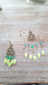 Na een aantal armbandensets te hebben gemaakt, heb ik er deze keer voor gekozen om een sieradenset te maken. Deze keer met bronskleurig metaal. Dit heb ik gecombineerd met diverse kleuren groene glaskralen.