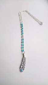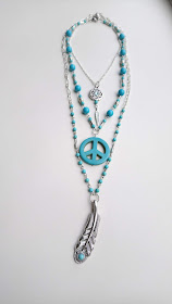 Deze keer ben ik aan de slag gegaan met prachtige turquoise kleur en zilverkleurige onderdelen. Ik heb er deze drie gypsy boho style kettingen van gemaakt. Een supermooie grote veren hanger als eye catcher! Je krijgt echt een zomers gevoel van deze set. Maak je festival look compleet met deze sieraden.