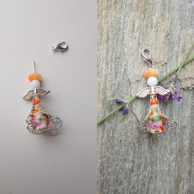 - Maak een oogje in de kettelstift en bevestig het engeltje aan de sluiting.