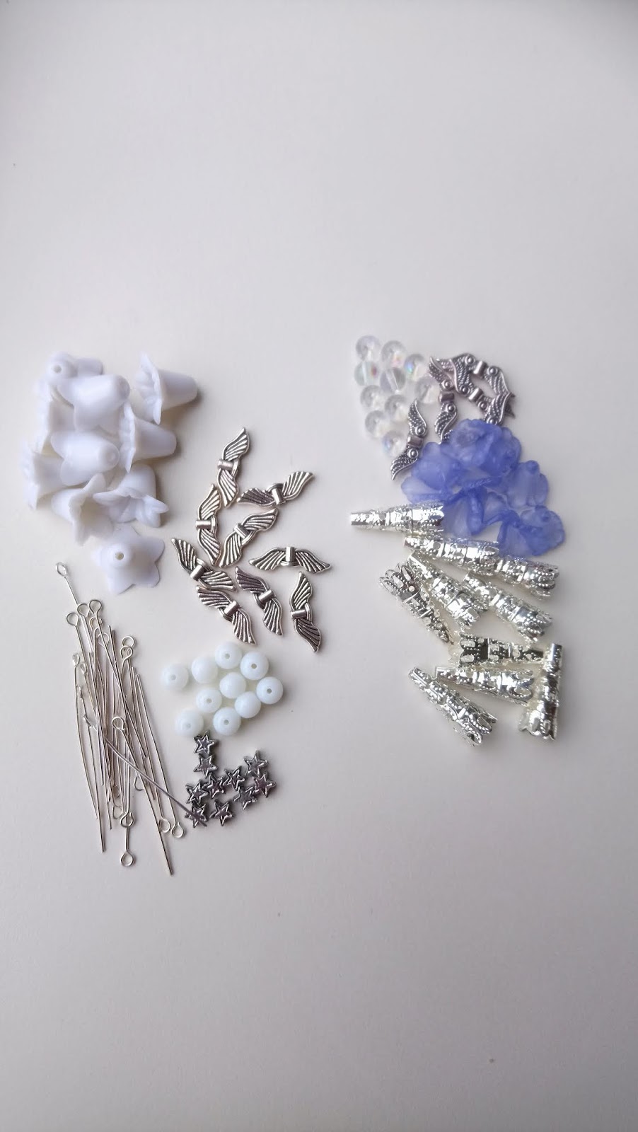 - Rijg het witte kelkje met een vleugeltje, witte kraal en ster kraal op een kettelstift.