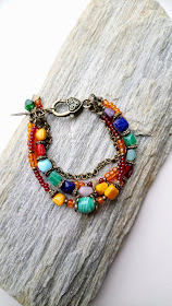 Hoe leuk is deze armband?! Al die kleurtjes bij elkaar, ik hou ervan. In combinatie met het geel koper, krijgt het een boheemse uitstraling. Prachtige sluiting ook!