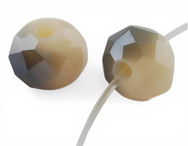 Maar wat betekent "facet" eigenlijk precies? Facet verwijst naar de veelhoekige vorm van de kralen. Ze worden afgeslepen, waardoor er verschillende kleine oppervlakken ontstaan, die de facetten worden genoemd. Dit slijpproces wordt niet alleen toegepast op onze kralen, maar ook bijvoorbeeld op diamanten. Diamanten hebben van nature niet de vorm zoals we ze kennen; ze worden geslepen om hun karakteristieke uiterlijk te verkrijgen.